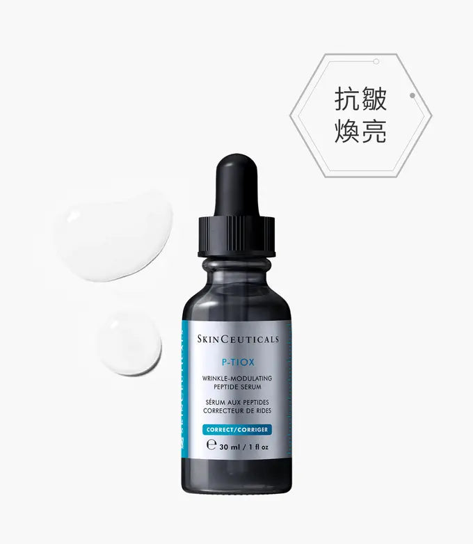 面部表情是通過肌肉的持續拉扯而產生,然而隨著年齡增長,膠原蛋白逐漸流失,皮膚結構開始老化及失去彈性,這些通常出現於眼周、前額、臉頰及嘴角等的表情紋,久而久之便會形成明顯可見的皺紋及細紋。P-TIOX 胜肽抗皺精華採用無針方法,研發新一代先進胜肽配方,有效對抗全面表情紋,同時令肌膚猶如玻璃般光澤透亮 ,進一步打造年輕肌膚。